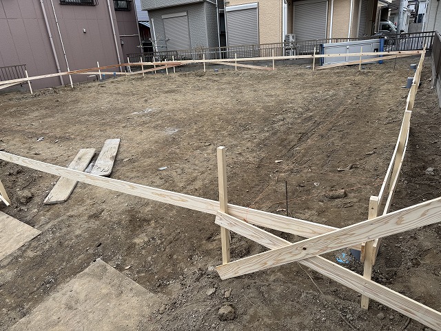 新築現場では基礎工事の前に木の柵で建設予定地を囲いますが、