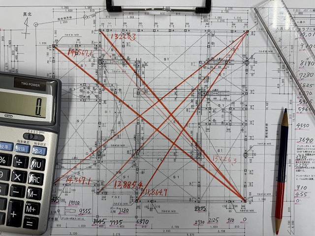 ちなみに、遣り方工事に入る前には図面上で寸法を計算します。