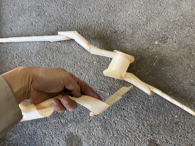 スギは掛けずらいので、鉋くずは少し厚めでもOK