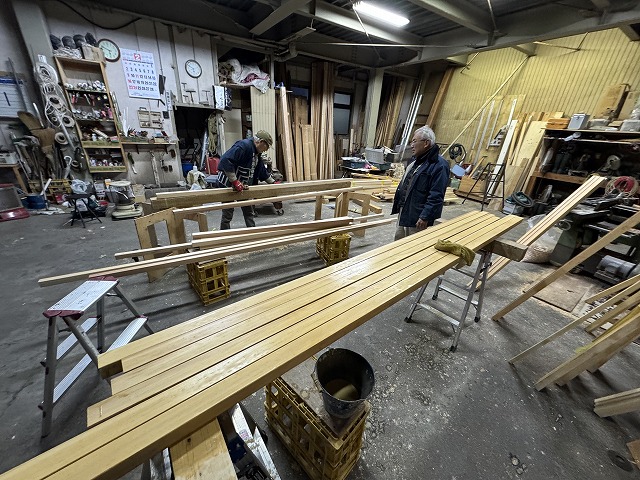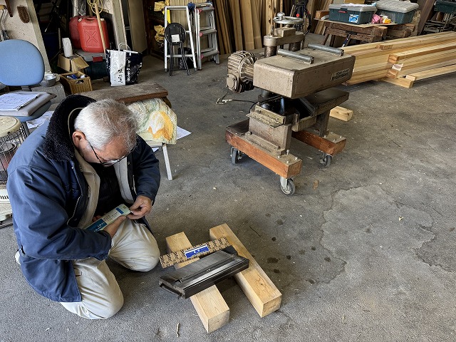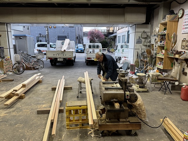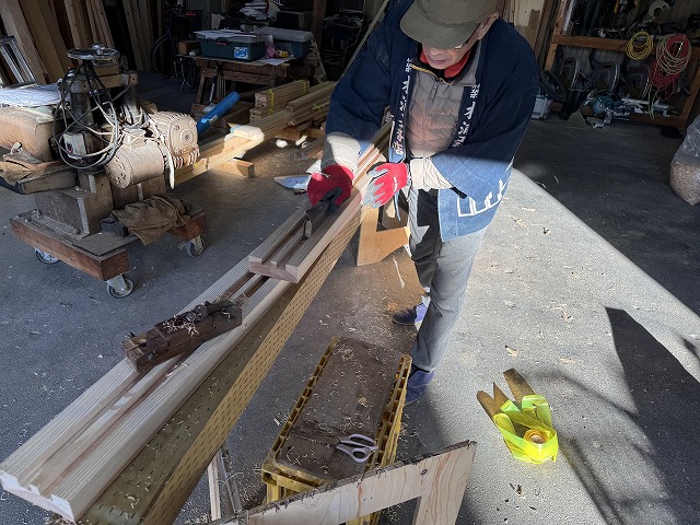 奥では内法材の面取りを行っており、