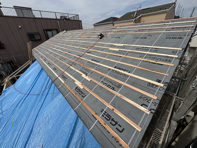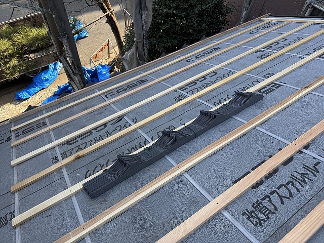 同日に、瓦屋さんが屋根の下準備をしていました。