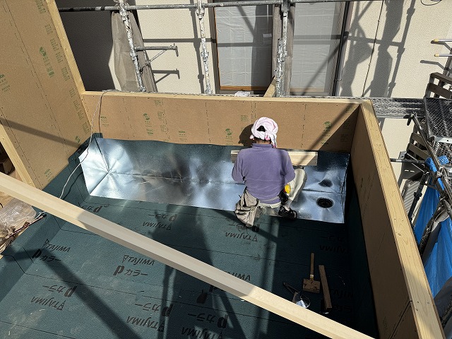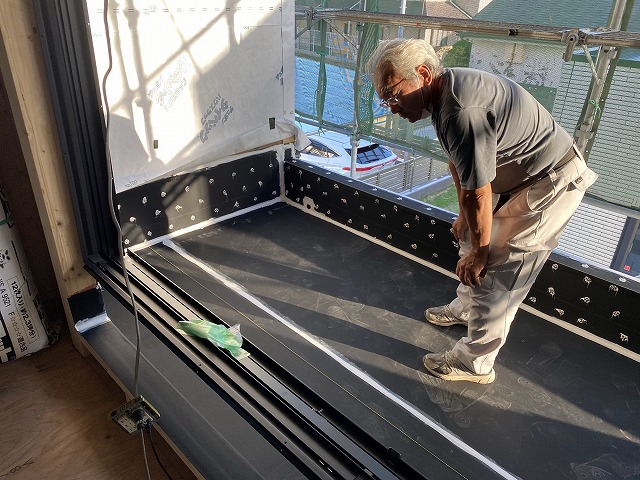 写真はベランダにルーフィングを貼り、その上にトタンを敷設しています。