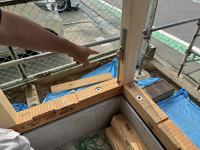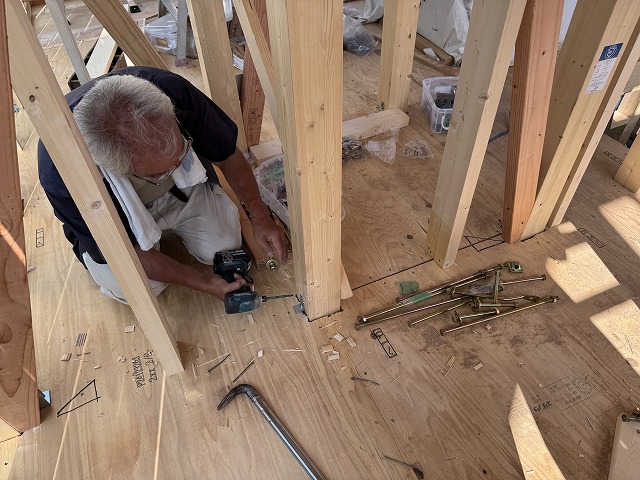 現場監督が金物を設置します。