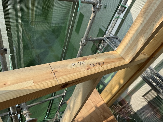 筋交いを入れる箇所に、マークを付けます。