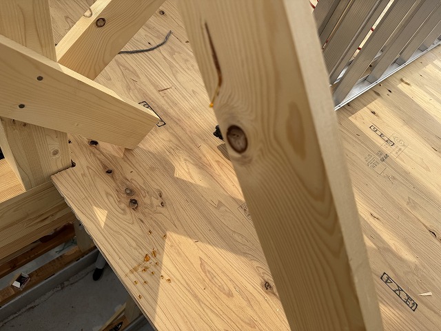 仮筋に使っている栂材からヤニが垂れていました。