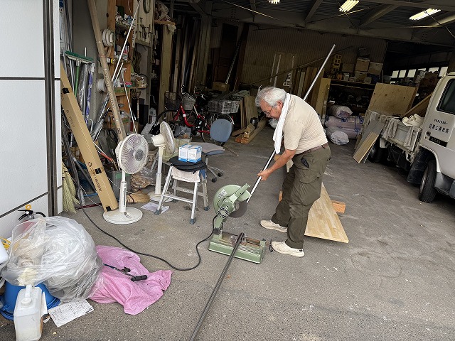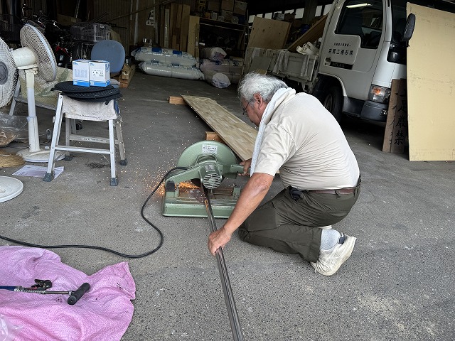 鉄パイプを高速カッターで切っていきます。