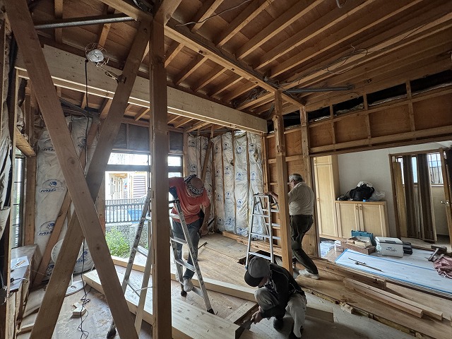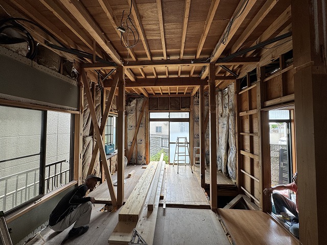 こちらの梁は、梁の下に別の梁を払い込む補強を行います。