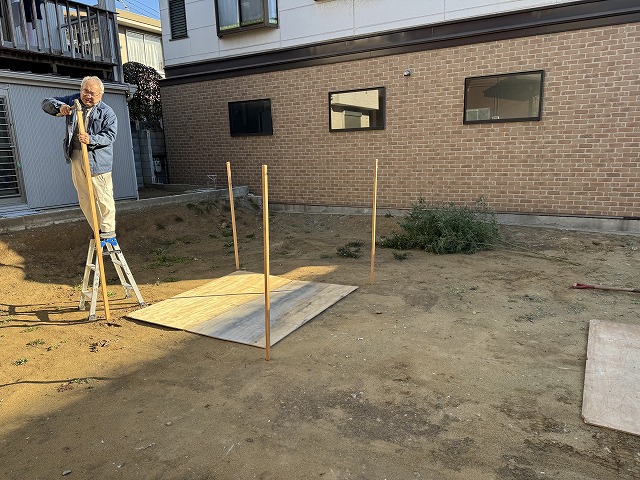 祭壇とお客様が立つ場所にはべニアを敷いて、