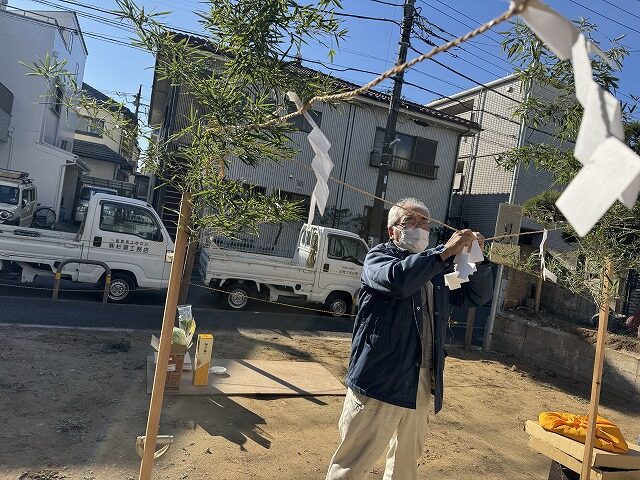 竹は枯れないよう、地鎮祭当日に伐採します。