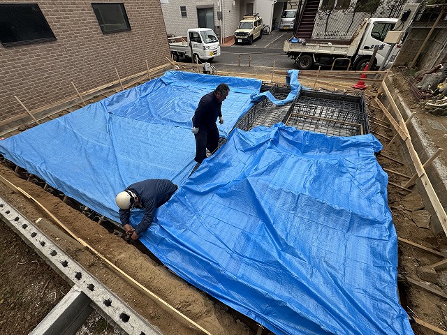 雪が降る予定の翌日にコンクリートの打設が予定されていますが、