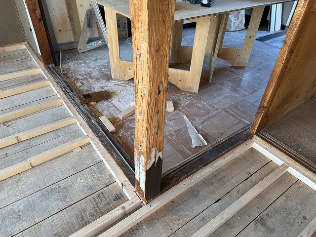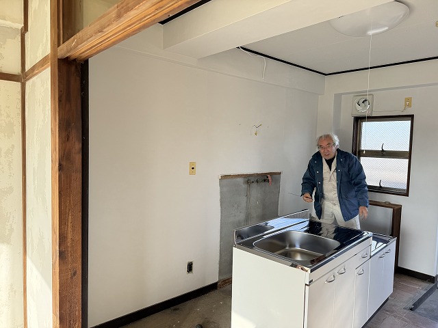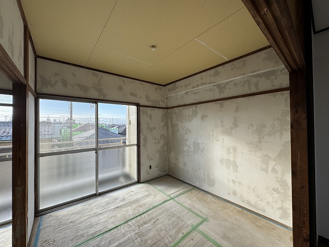 表面にパテ処理をかけてクロス壁が貼れるよう準備します。